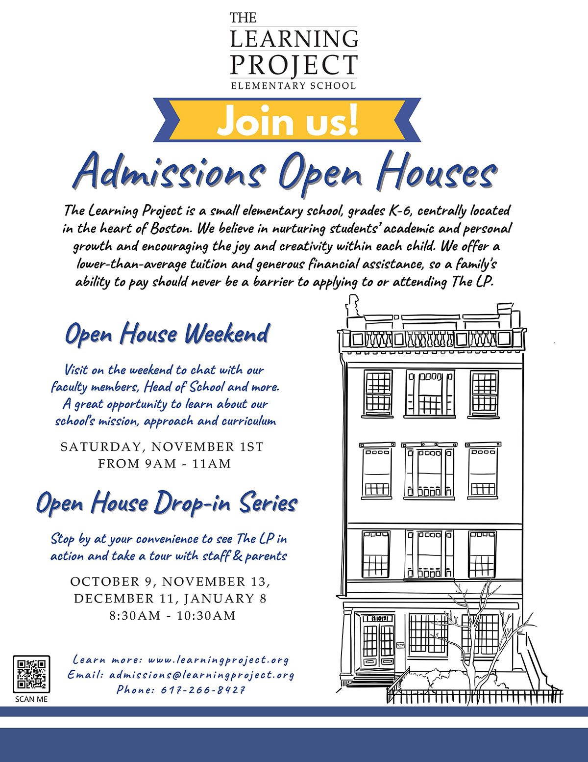 Join us at an open house to learn more about The Learning Project Elementary School. The LP is a small elementary school, grades K-6, centrally located in the heart of Boston. We believe in nurturing students’ academic and personal growth and encouraging the joy and creativity within each child. We offer a lower-than-average tuition and […]